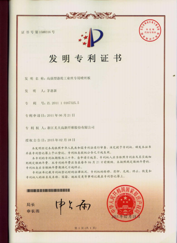 高強(qiáng)型滌綸工業(yè)絲專(zhuān)用噴絲板