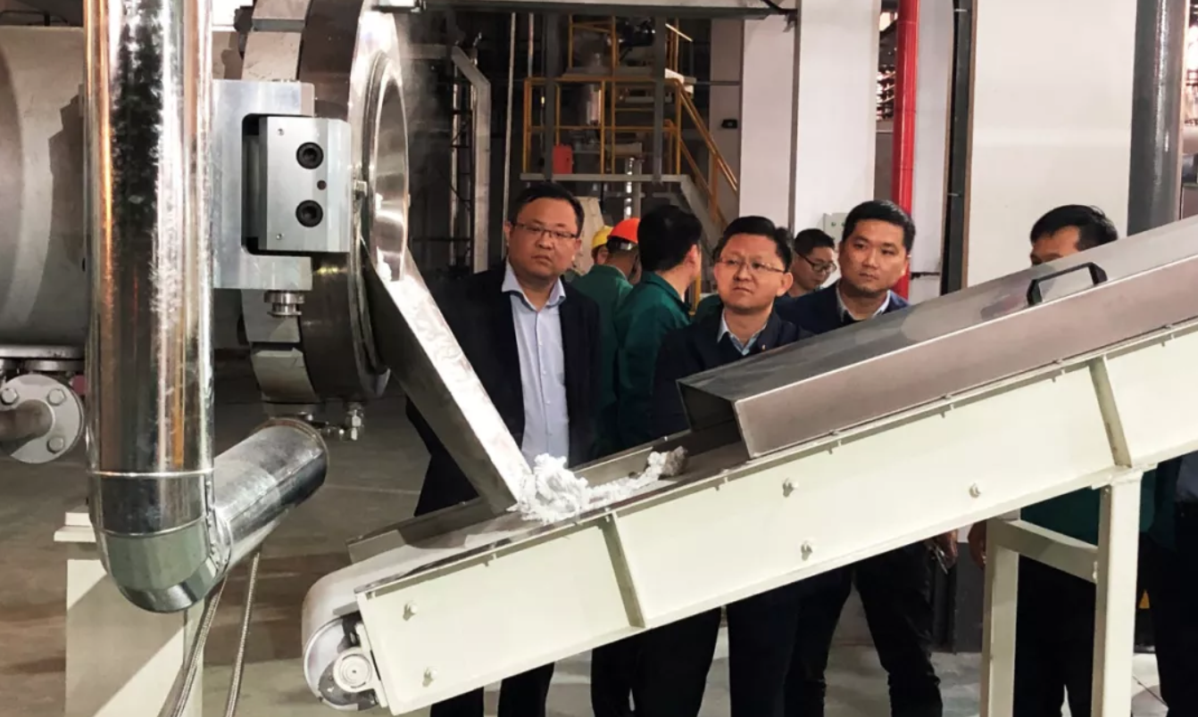 2019年11月21日,尤夫股份聯(lián)席總裁翁中華、化纖總經(jīng)理王尤輝在銷售總監(jiān)李敬之的陪同下,深入天花膜事業(yè)部,調研指導試機工作。